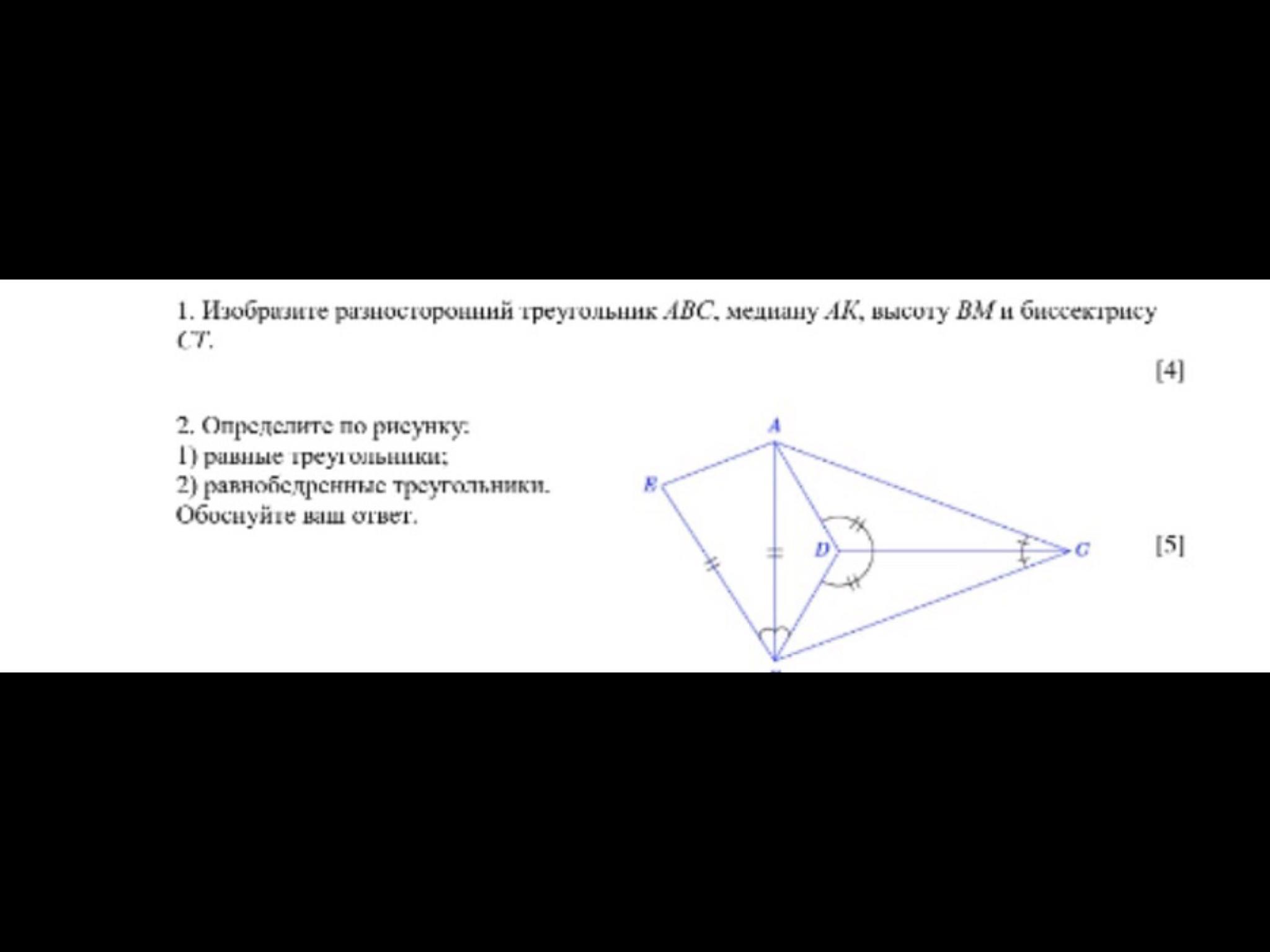 равнобедренные треугольники: BA(третью буквы там не видно) ; AC(третьей буквы не видно)