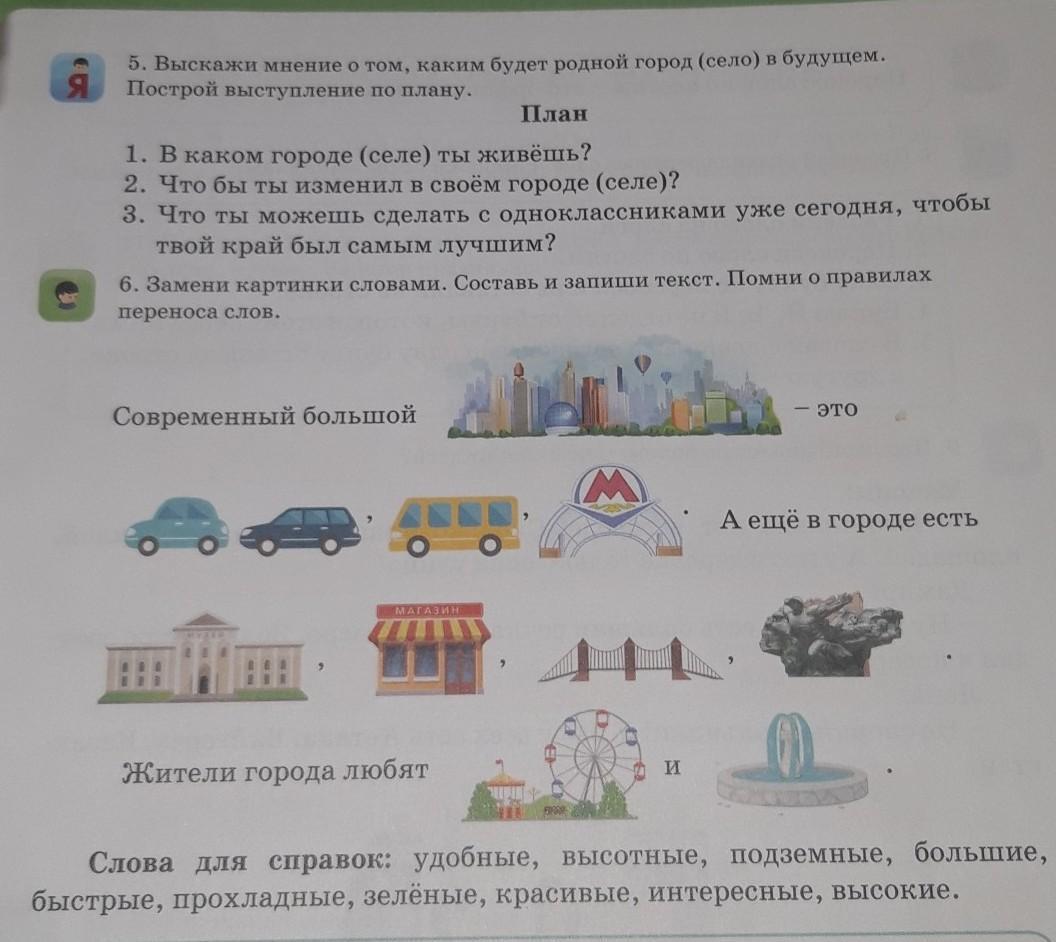6) Это современный большой город. А ещё в городе есть машины,автобусы,метро. Жители города любят аттракционы и фантаны