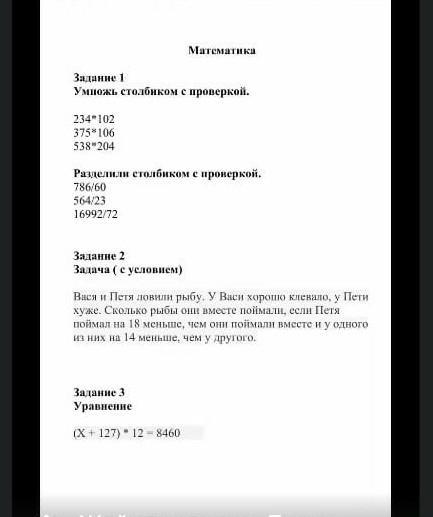 7)х-всего рыб, х-18 - поймал Петя, х-18+14=х-4 - поймал Вася