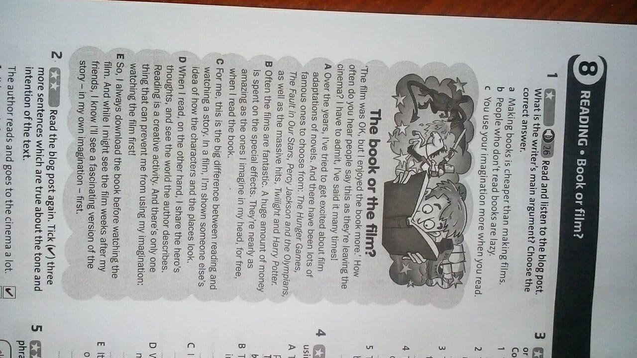 D - Но,с другой стороны,когда я читаю я разделяю мысли главного героя и чувствую мир в описании автора. Чтение-очень креативное занятие.Поэтому,есть только одна