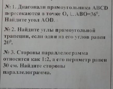 1)∠АОD=144°; 2) 90°, 90°, 20°,160°; 3) 1сторона=5см, вторая 15 см.