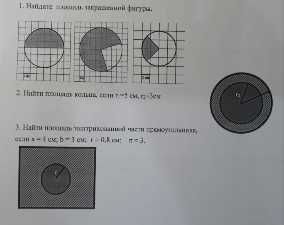 1) r=3см S=пи*r^2=3.14*3^2=28.26cм^2 s=28.26/2=14.13cм^2