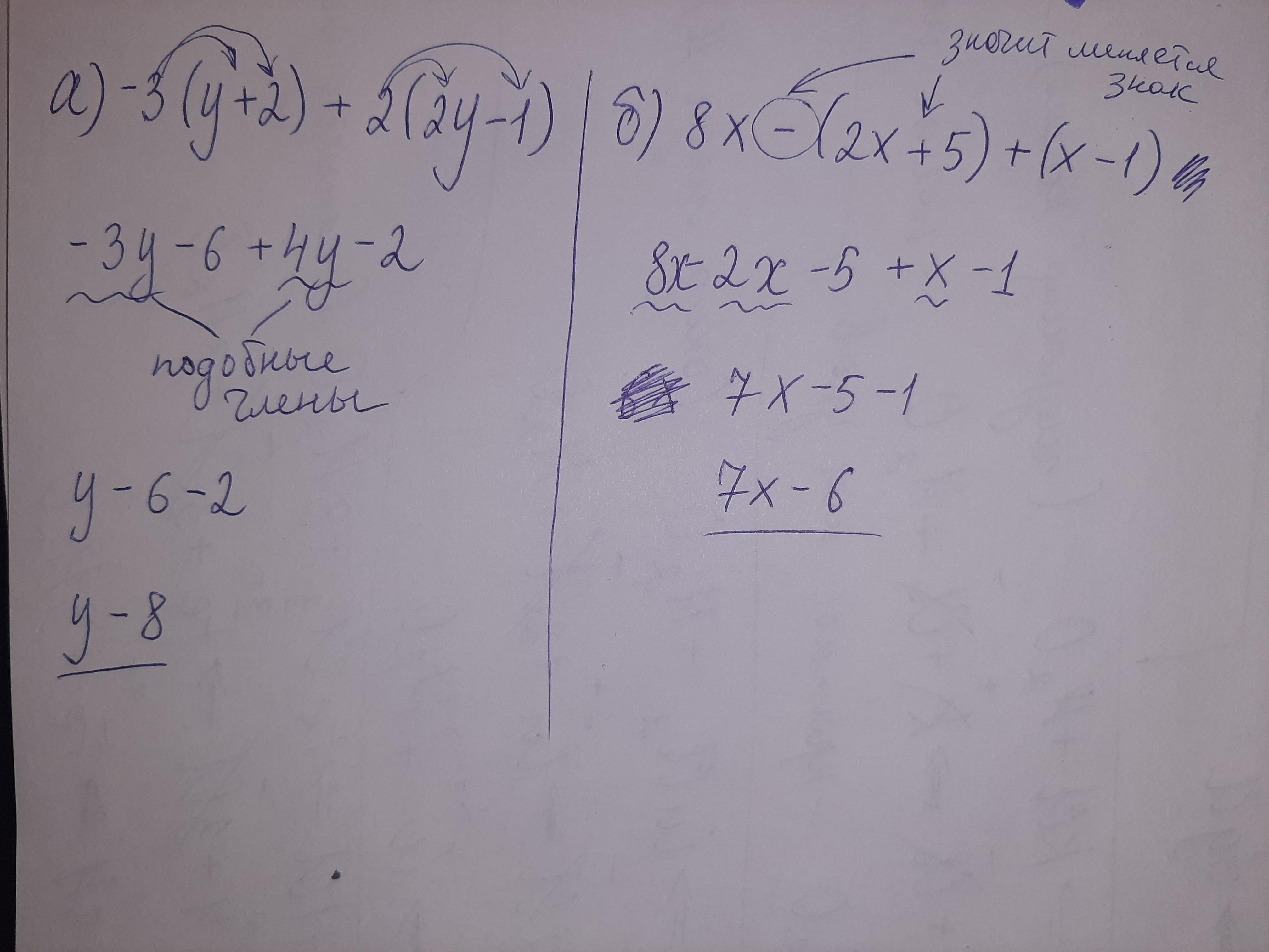 б) 8х - (2х +5) + (х-1);