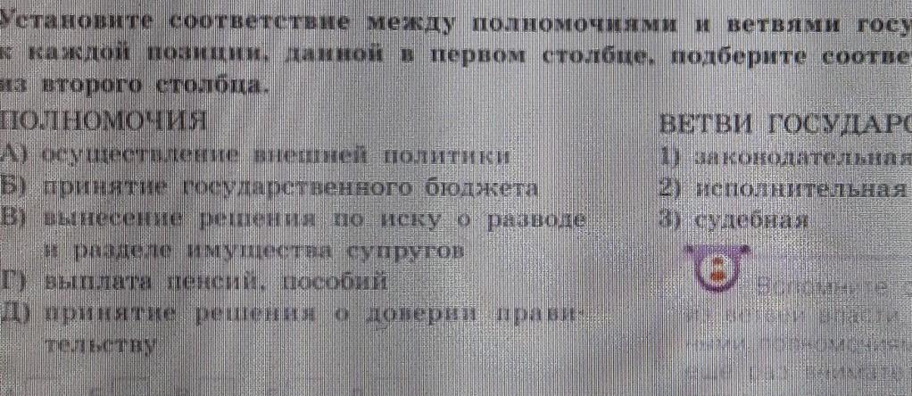 Установите соответствие между полномочиями и ветвями государственной власти: каждой позиции данной в первом столбце подберите соответствующую позицию из второго столбца