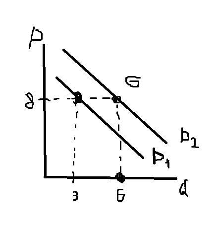 При увеличении покупателей кривая спроса сдвигается вверх-вправо, спрос возрос в 2 раза