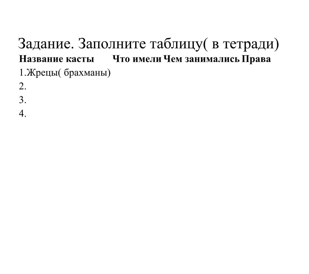 Помогите пожалуйста! С историей у меня проблема :( нужно написать Касты из Древней Индии ,что они имели, чем занимались и их права.