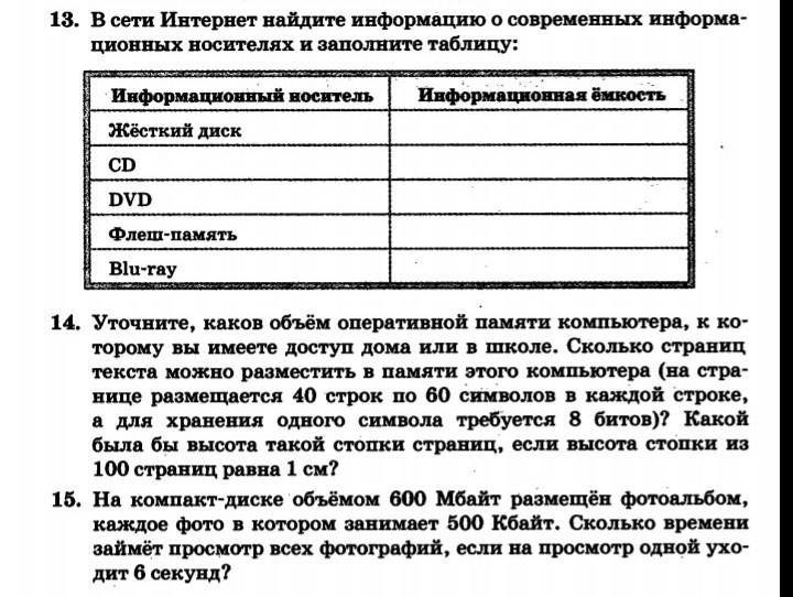 13. 1)жесткий диск от 128 Гигабайт до 10 Терабайт