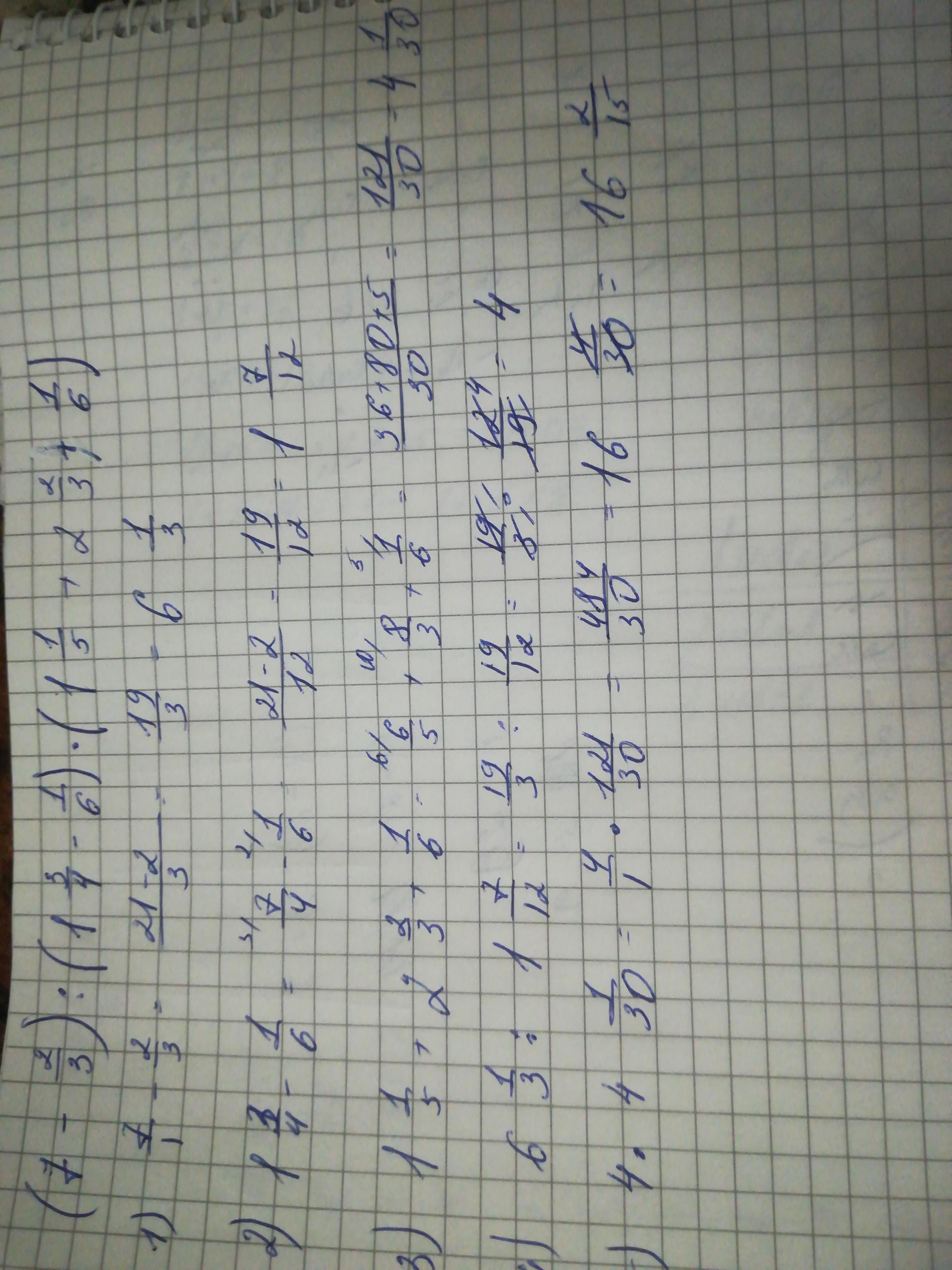 ( 7 - 2/3 )÷ (1 3/4 - 1/6)× (1 1/5 + 2 2/3 + 1/6 5 класс​