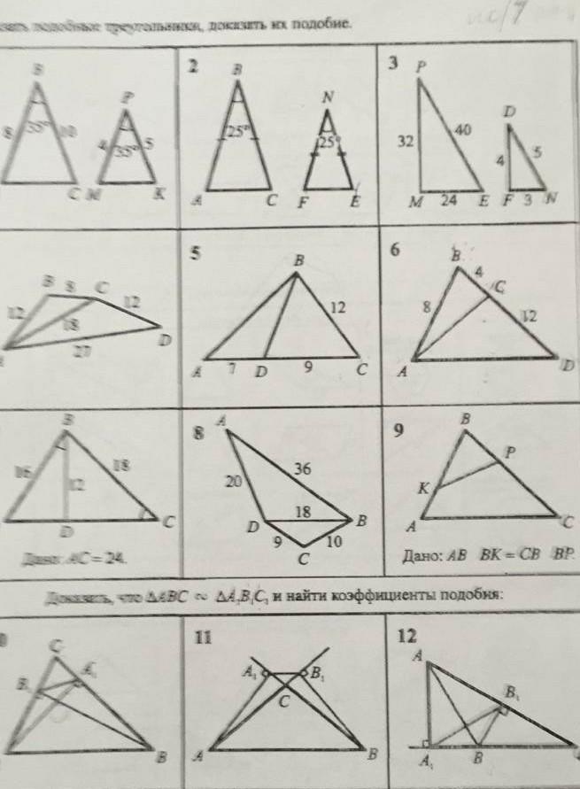 Помогите пожалуйста решить ВСЕ ЗАДАЧИ (надо указать по какому признаку подобны треугольники, и доказать это)