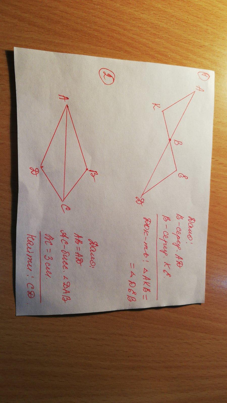 треугольники AKB и DEB равны по первому признаку (по двум сторонам и углу между ними)
