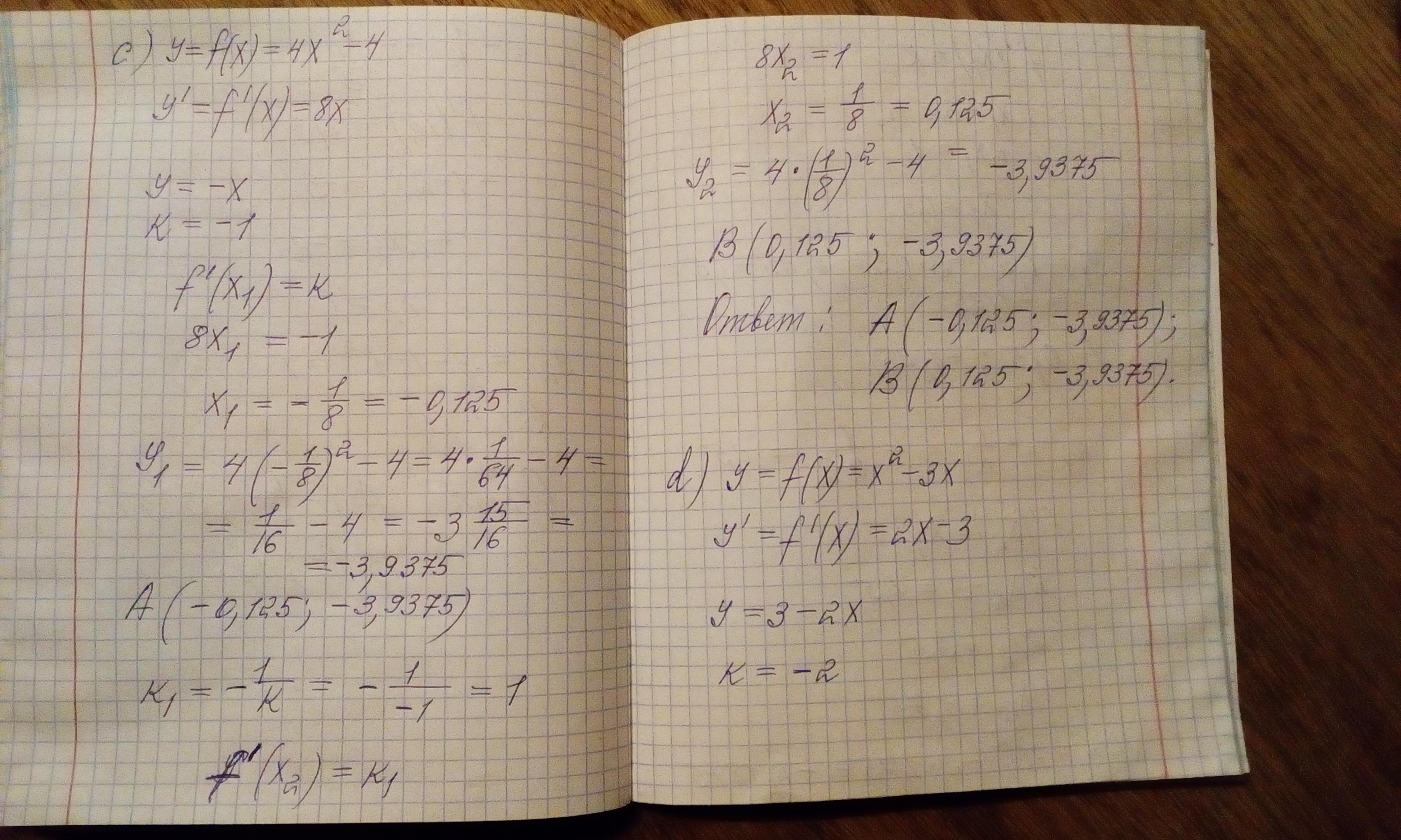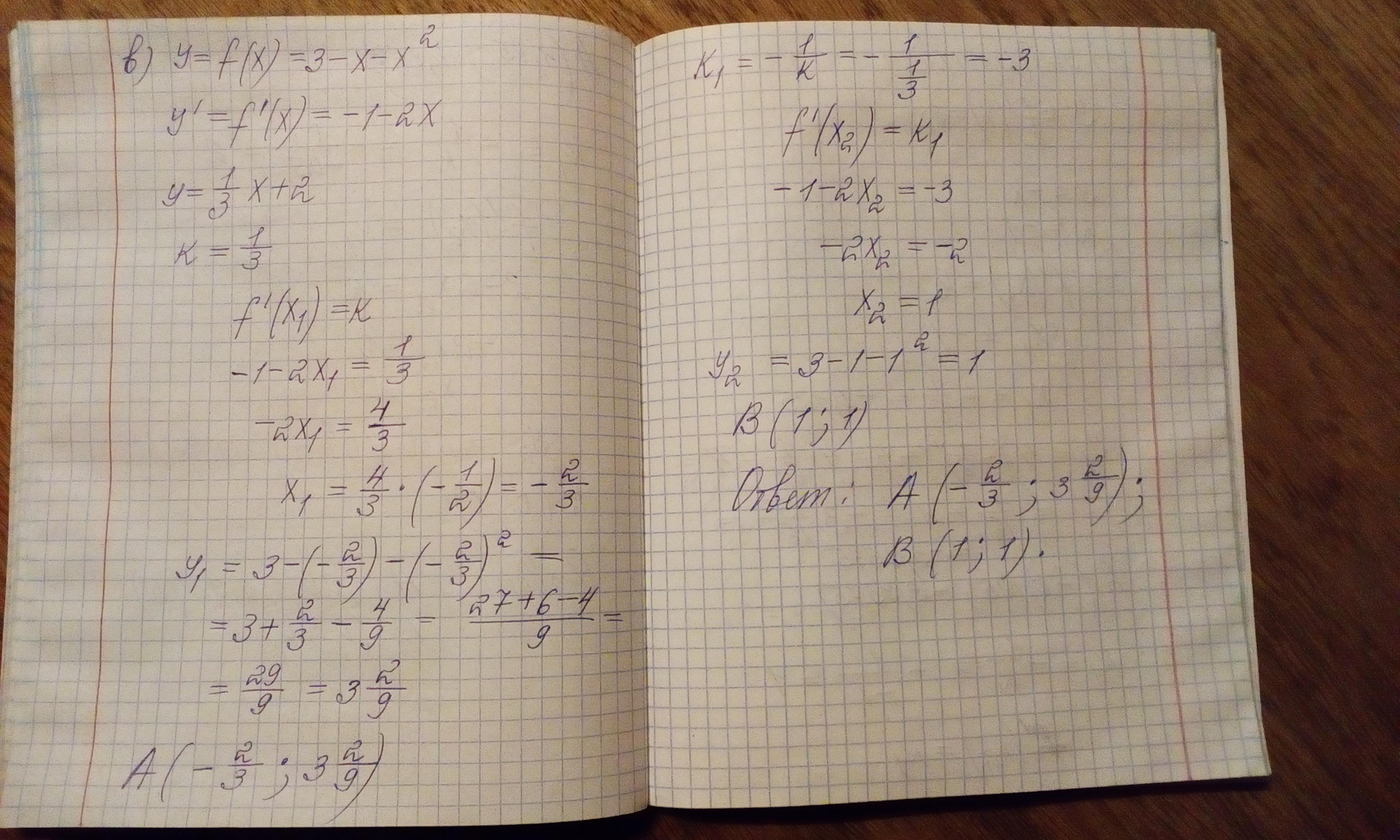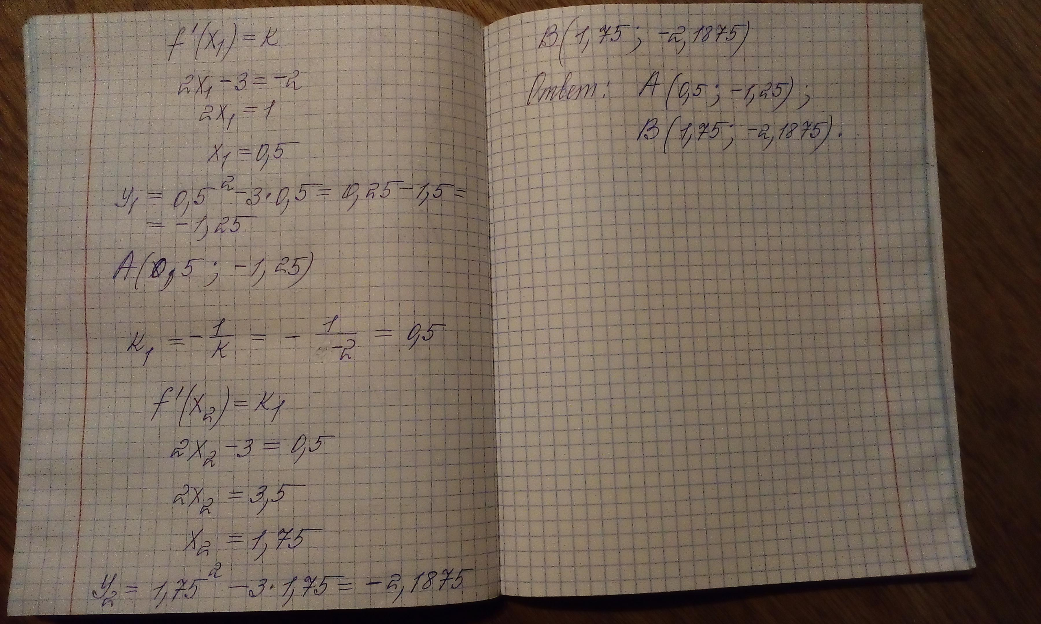 Найдите точку графика A (x1;y1) функции y =f(x), в котором касательная параллельна указанной прямой, и точку B (x2; y2), где касательная перпендикулярна указанной прямой.