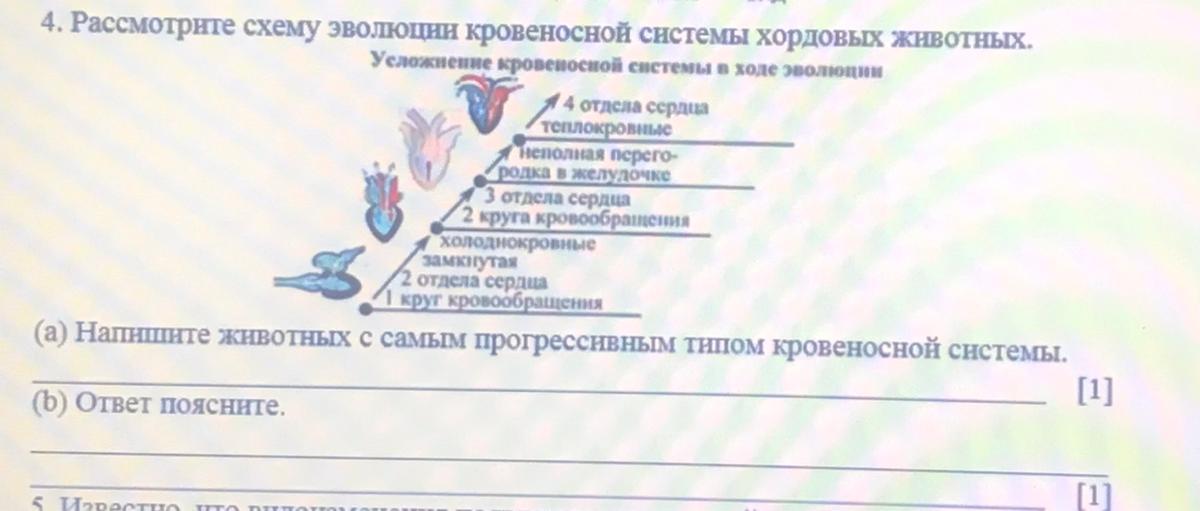 4. Рассмотрите схему эволюции кровеносной системы хордовых животных.