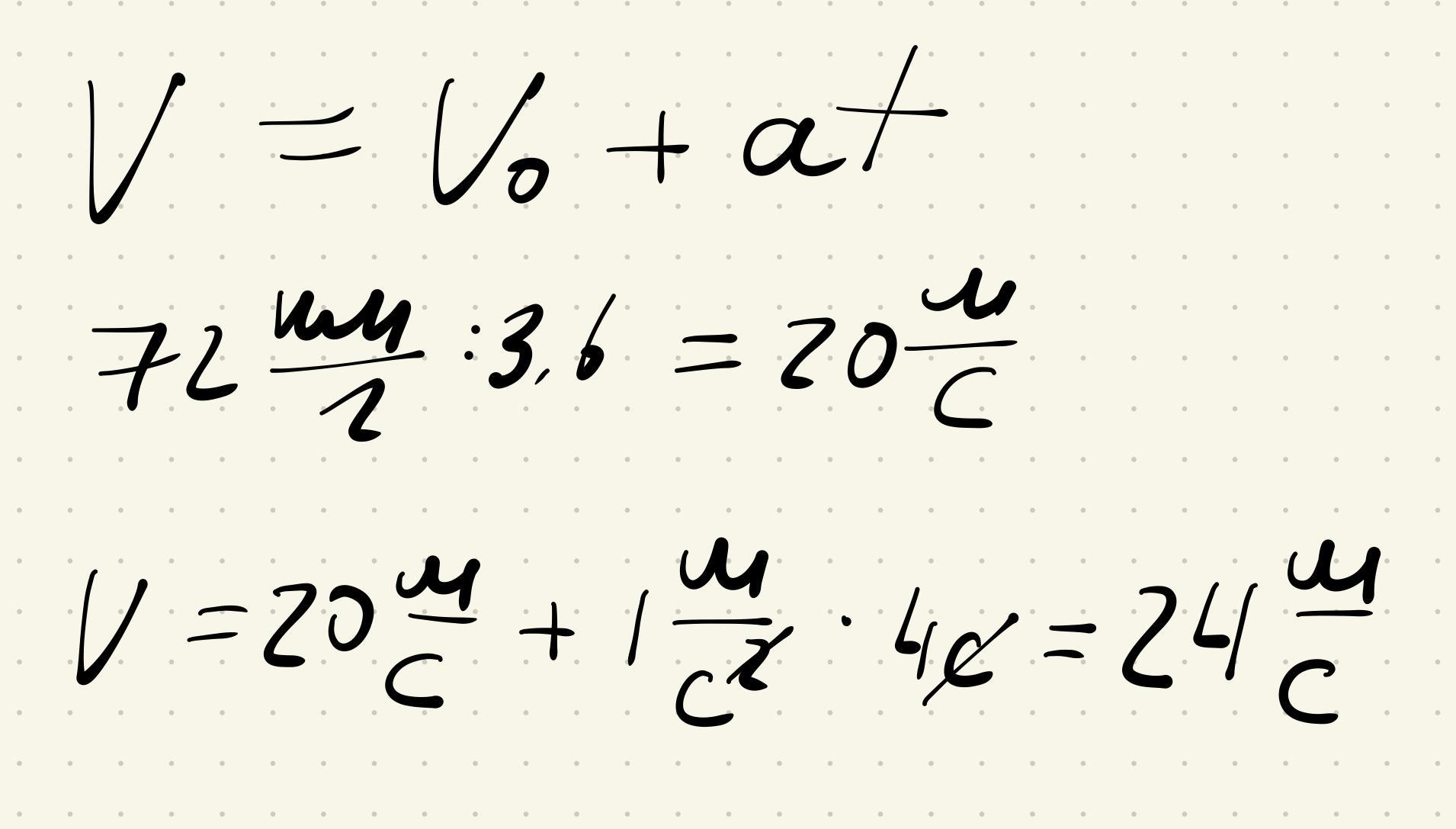 определите, какой станет скорость тела двигающегося с ускорением 1м/с2 за 4 секунды,еали начальная скорость была 72км/ч.