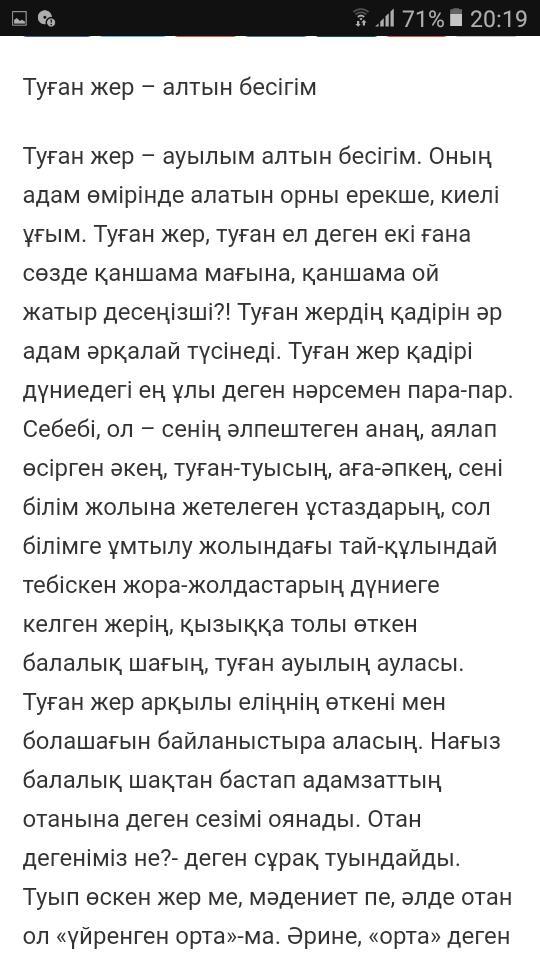 Помогите. Эссе по казахскому языку на тему "Туған жер-алтын бесігім". Пожалуйста у меня СОЧ