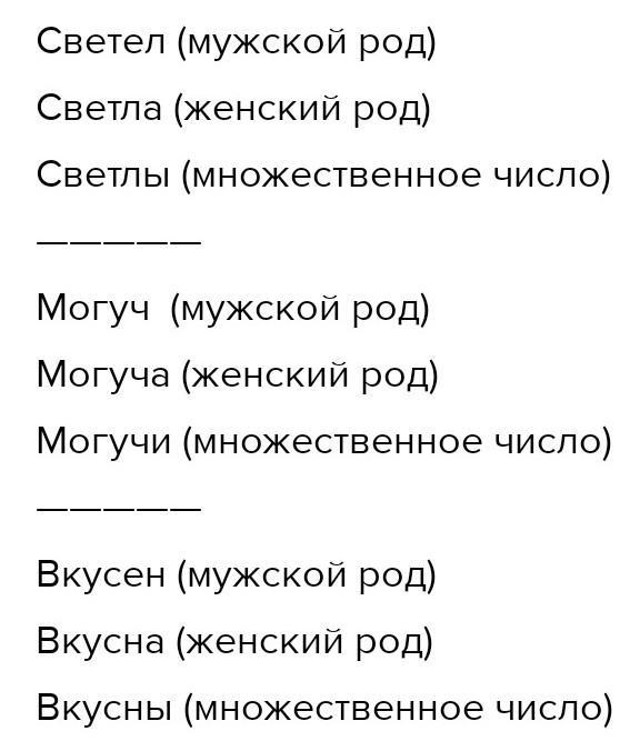 Задание 1: образовать краткую форму прилагательных. Изменить по родам и числам