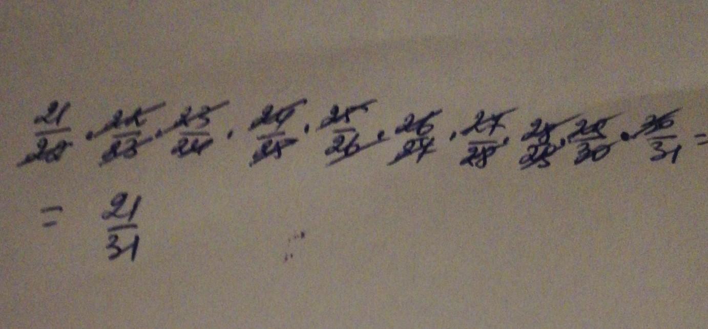 21/22×22/23×23/24×24/25×25/26×26/27×27/28×28/29×29/30×30/31=21/31