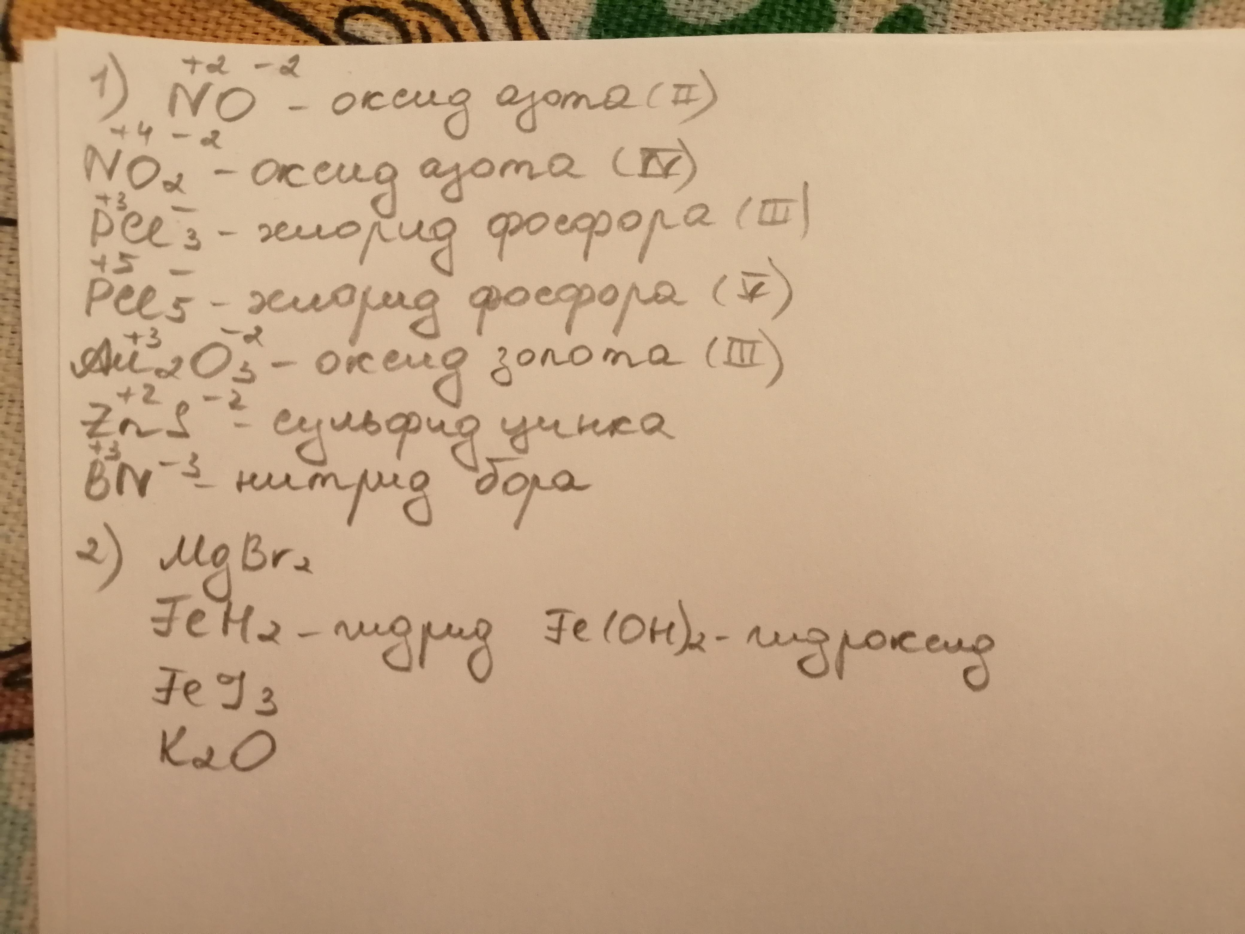 1.Определить степень окисления элементов в соединении.Назвать вещества:NO,NO2,PCI3,PCI5,Au2O3,ZnS,BN