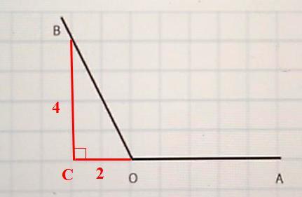 Проведем высоту BCK из точки B на продолжение стороны OA. Тогда: