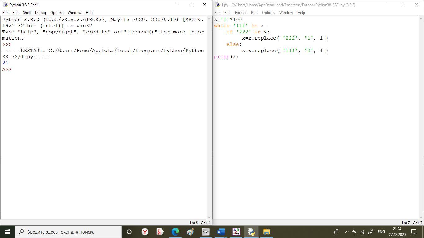 Исполнитель Редактор получает на вход строку цифр и преобразует её. Редактор может выполнять две команды, в обеих командах v и w обозначают цепочки цифр.Какая строка получится в результате применения приведённой ниже программы к строке, состоящей из 100единиц?