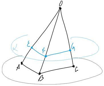 Если две параллельные плоскости (EFG||ABC) пересечены третьей (AOB), то линии пересечения параллельны, EF||AB.