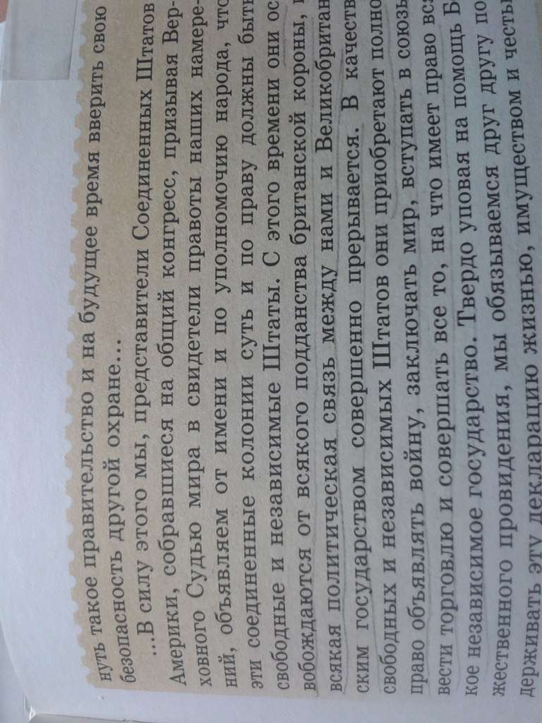 Права и вольности колонистов целиком выводились из прав своих предков, британских подданных, и истолковывались так, что они "не могут быть законным образом изменены и сокращены какой бы то ни было властью без согласия самих колонистов". В первой части Декларации содержится философско-правовое обоснование права колонистов на обособленное и самостоятельное существование, во второй - практическая аргументация в пользу необходимости и оправданности использования права народа на выбор формы правления, которая наилучшим образом обеспечит ему безопасность и счастье.Во второй части Декларации говорилось: король Англии является узурпатором, критика организации власти с позиций доктрины разделения властей: король поставил судей в исключительную зависимость от своей воли, король стремится сделать военную власть независимой от гражданской и поставить первую выше второй, главный вывод сводился к тому, что государь, характер которого заключает все черты тирана, не способен управлять свободным народом.