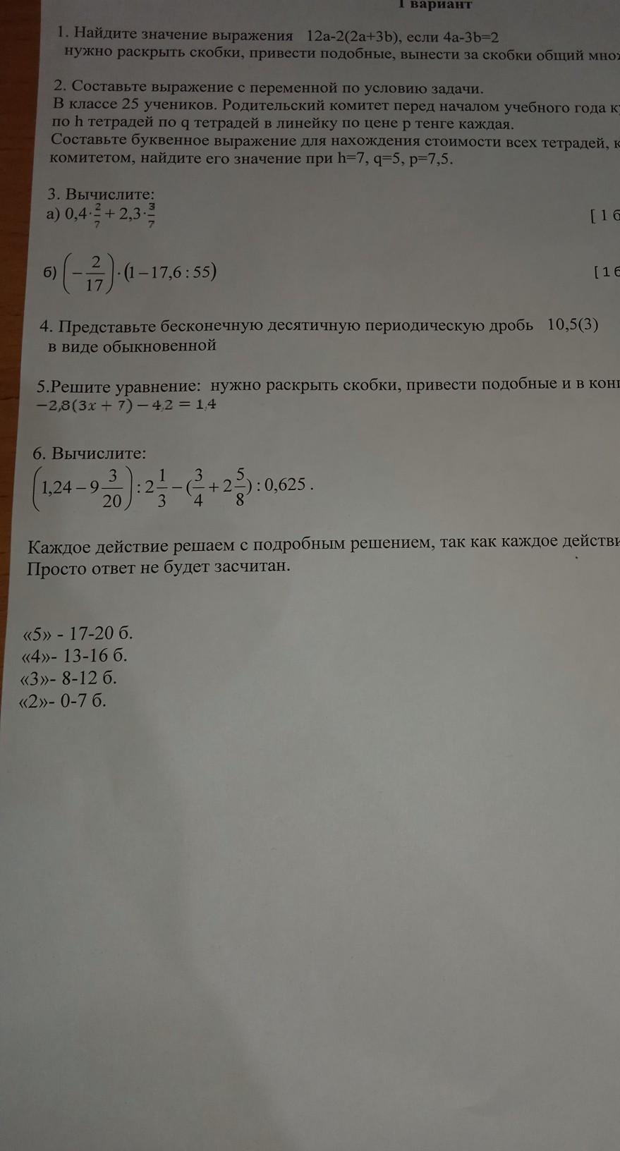 1. Найдите значение выражения 12а-2(2a+3b), если 4а-3b=2