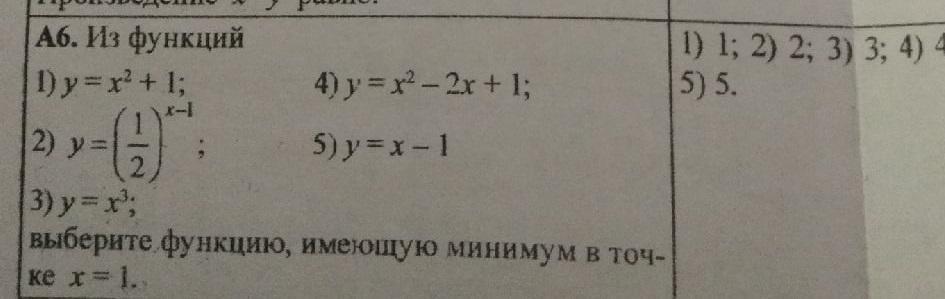- функция 4 - парабола с ветвями, направленными вверх (так как а=1>0) и вершиной с координатами х = -(-2)/(2*1)=2/2=1, у = 1²-2*1+1=1-2+1=0. Следовательно, минимум функции в точке х=1