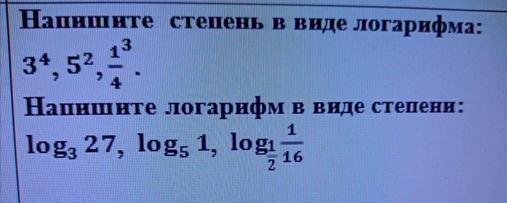 3) log(1/2)(1/16)=4 ←→ (1/2)⁴