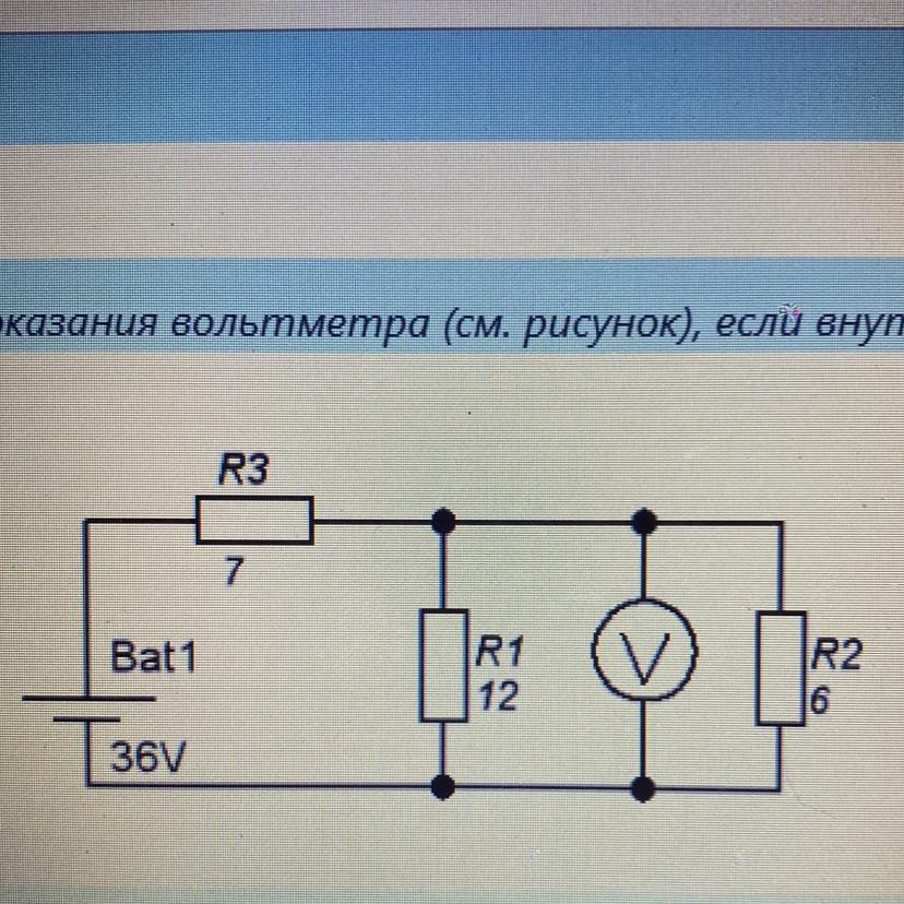 Определить показания вольтметра (см. рисунок), если внутреннее сопротивление источника тока равно 1 Ом