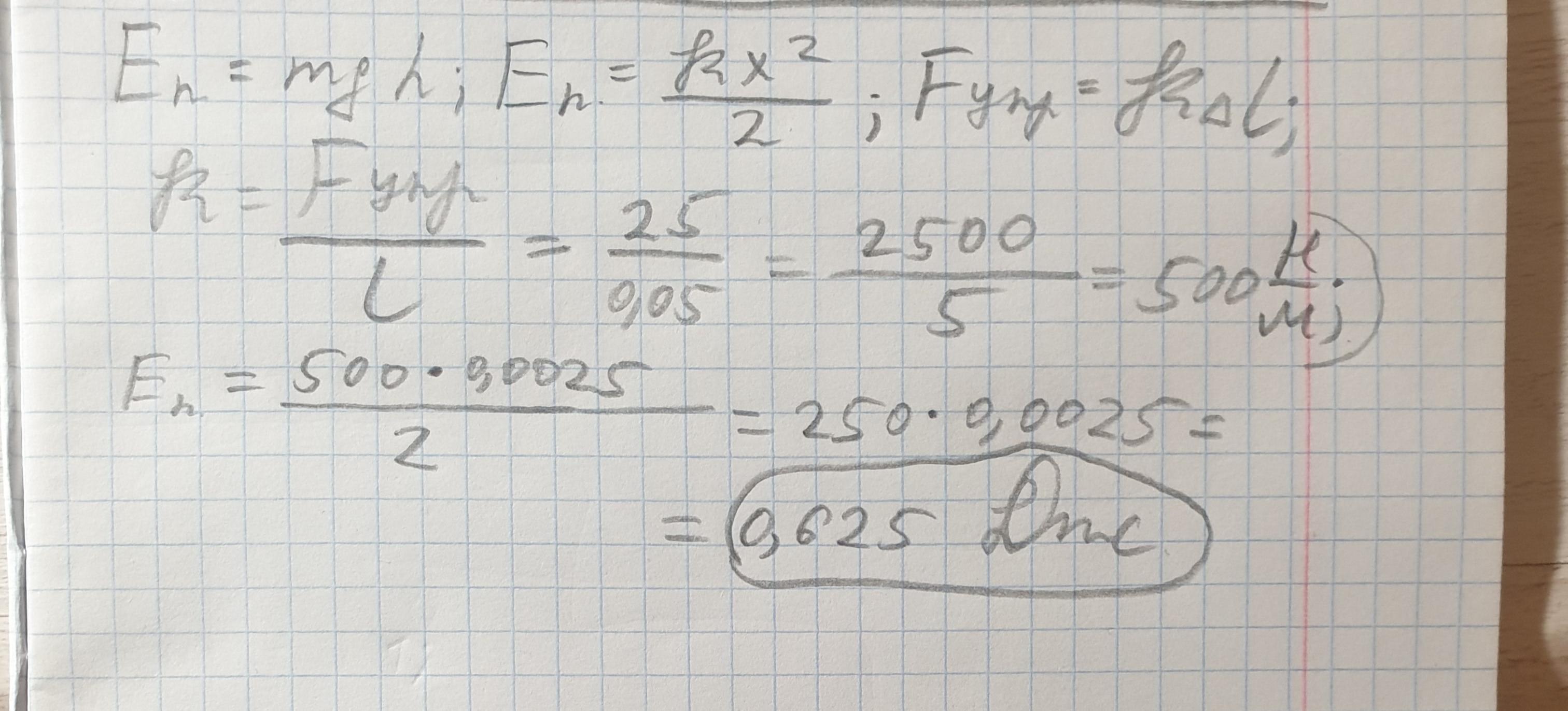 определите потенциальную энергию пружины длина которой под действием приложенной силы 25 H изменилась на 0,05 м