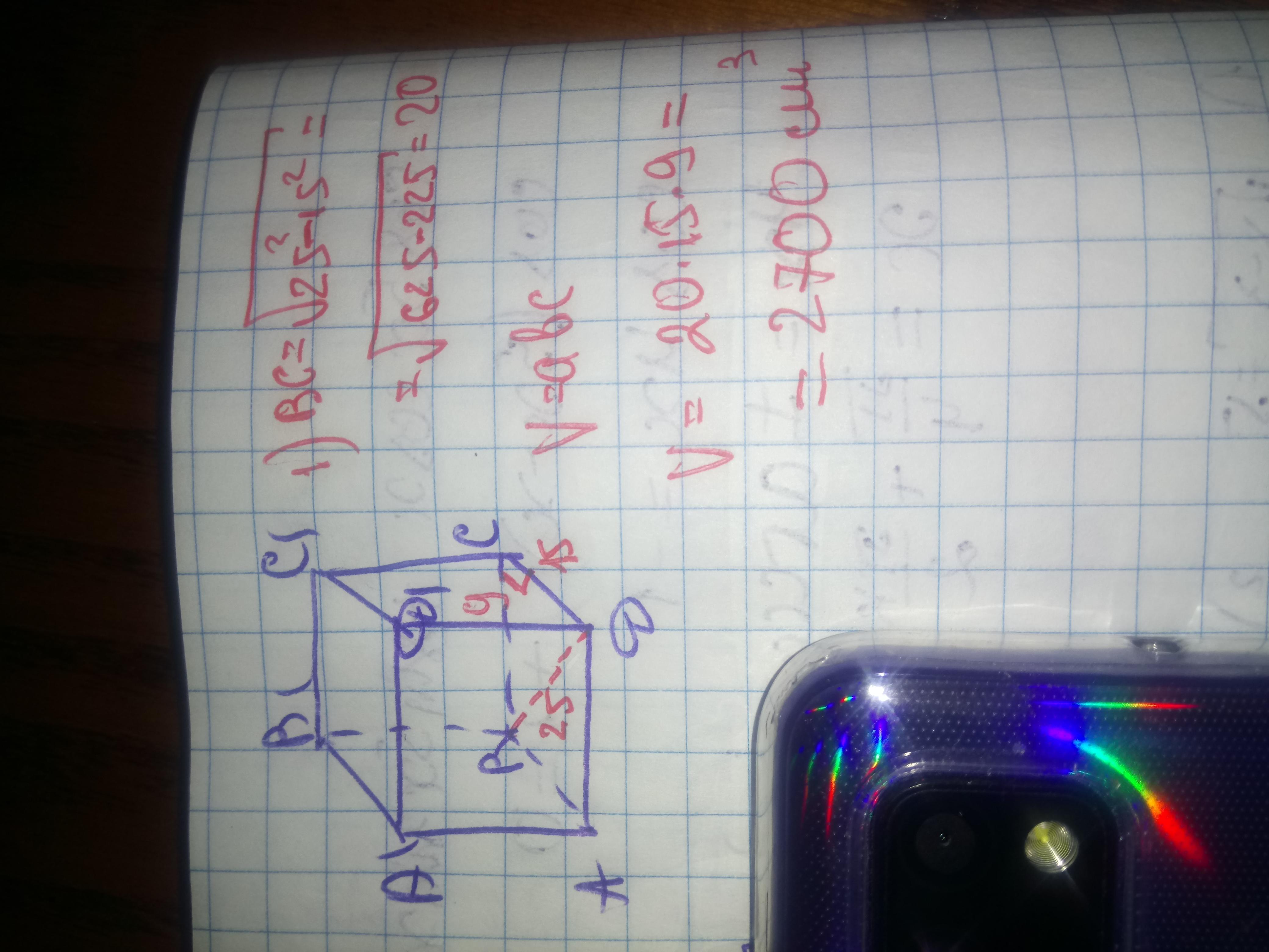 диагональю 25см. Высота призмы 9см. Вычислить объем призмы.