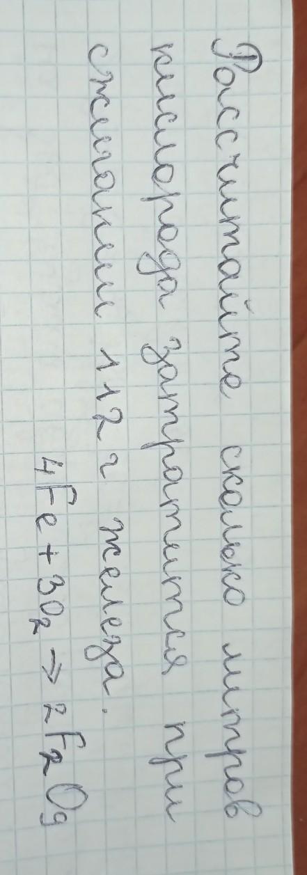Рассчитайте сколько литров кислорода затратится при сжигании 112 г железа.