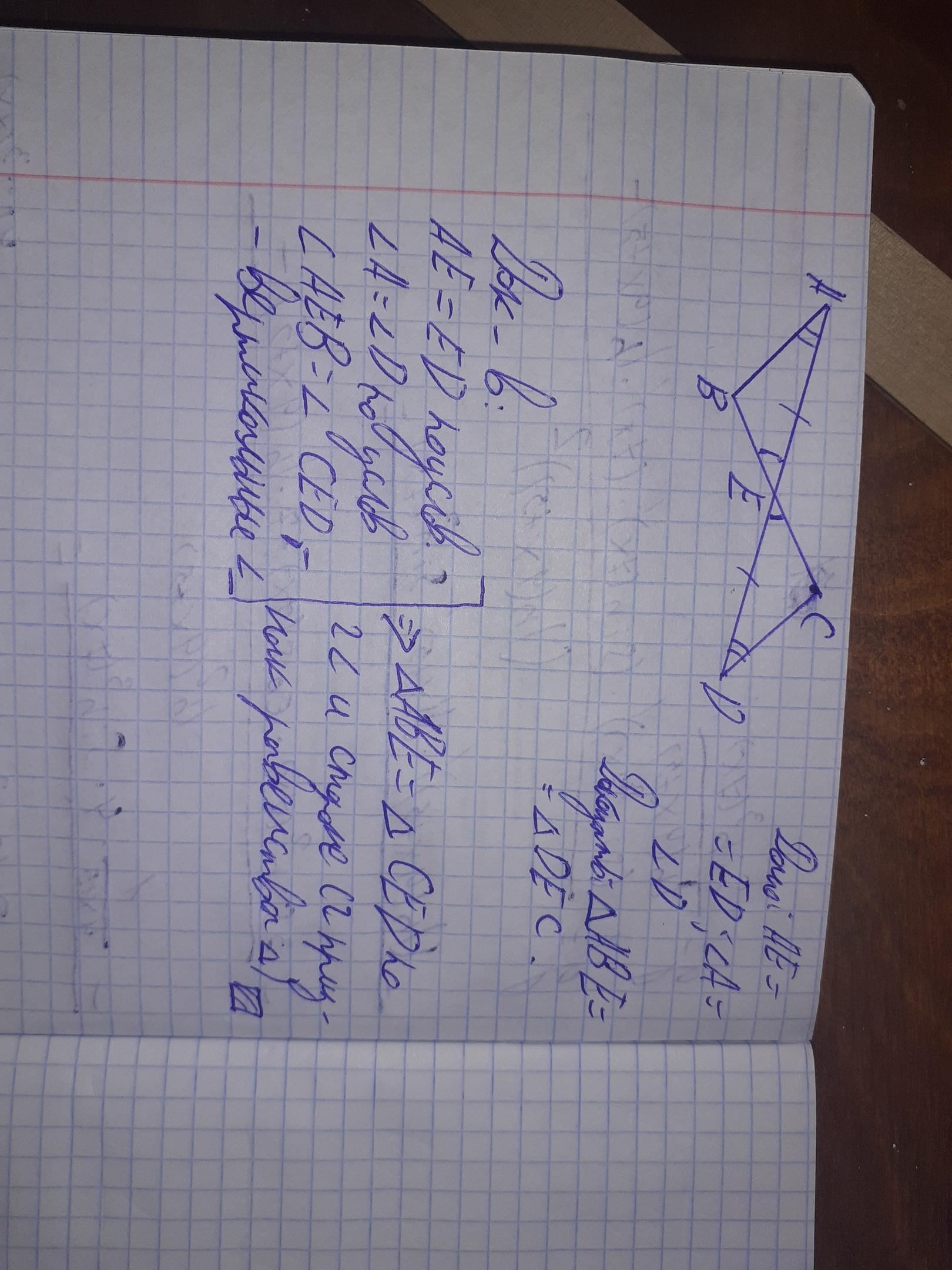 2) сторона AE треугольника ABE равна стороне ED треугольника DEC - согласно условию;