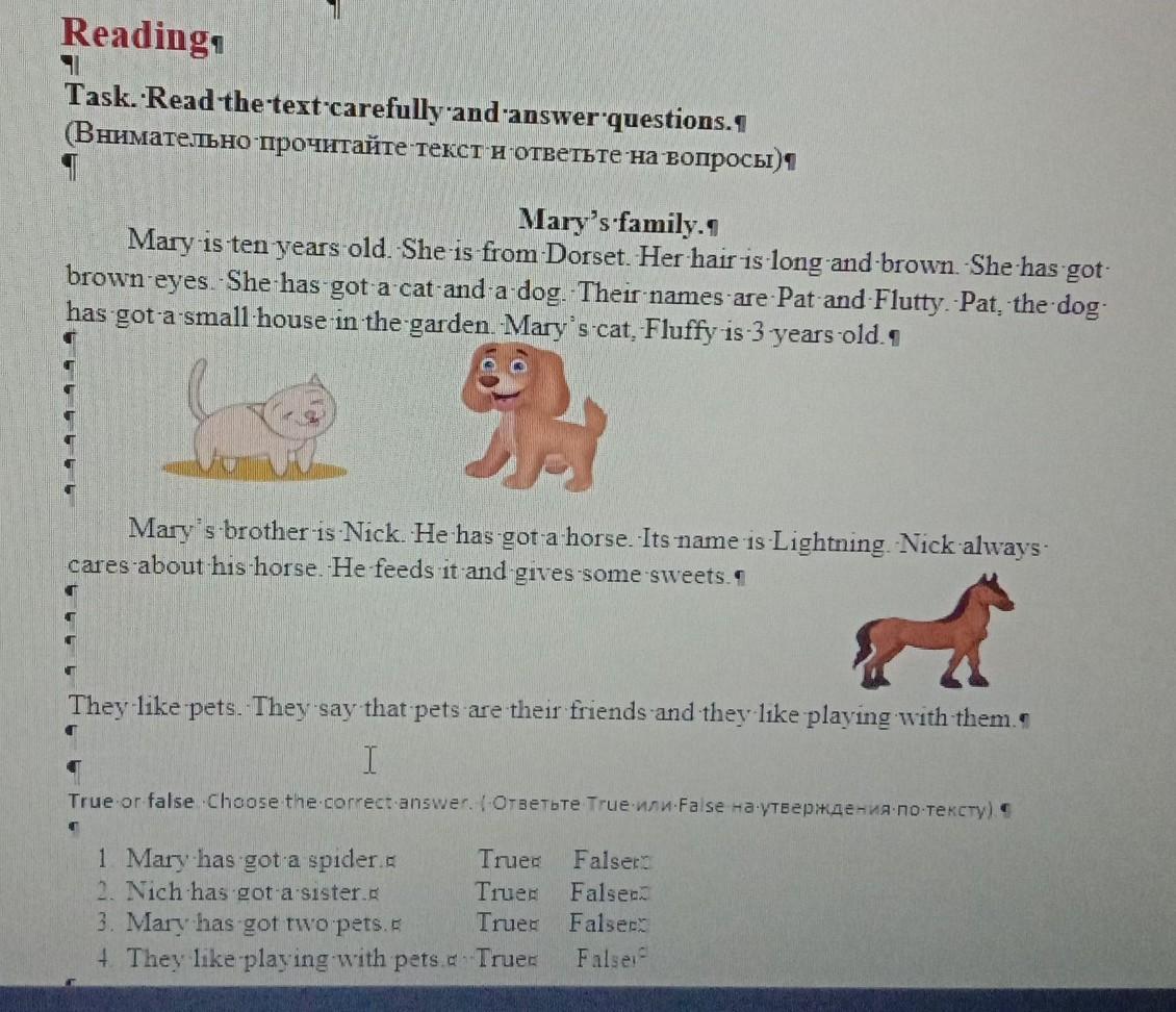 Mary's brother is Nick He has got a horse. Its name is Lightning Nick always