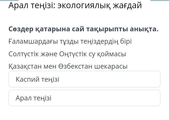 ғаламшардағы тұзды теңіздердің бірі солтүстік және оңтүстік су қоймасы Қазақстан мен Өзбекстан шекарасы Каспий теңізі