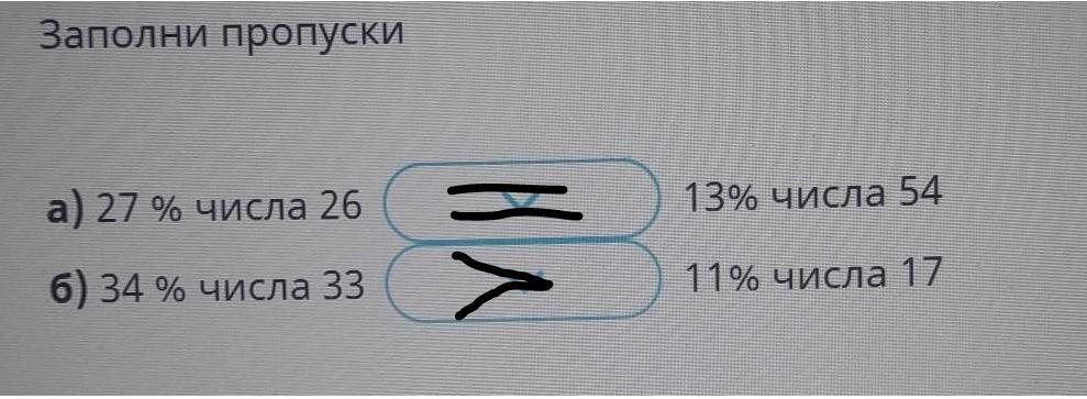 б)34% числа 33 > 11% числа 17