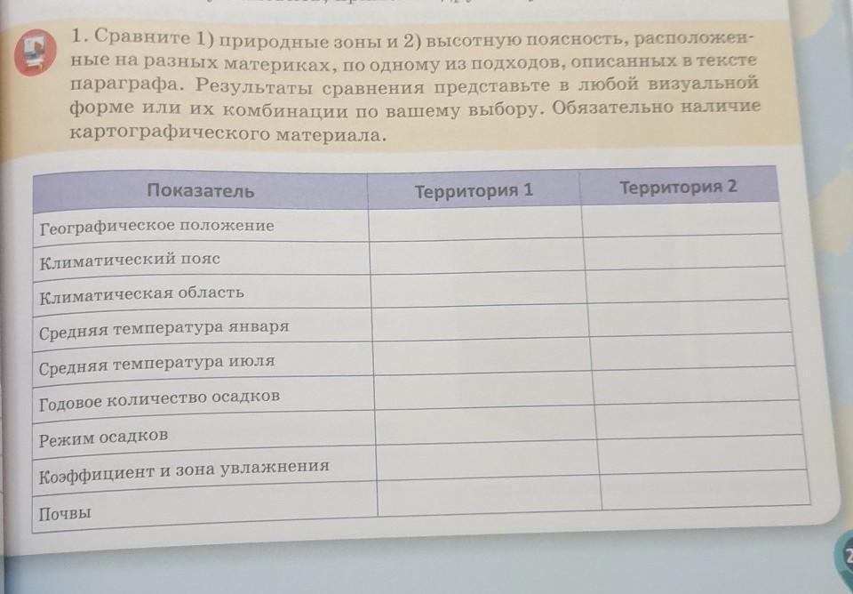 1. Сравните 1) природные зоны и 2) высотную поясность, расположен-
