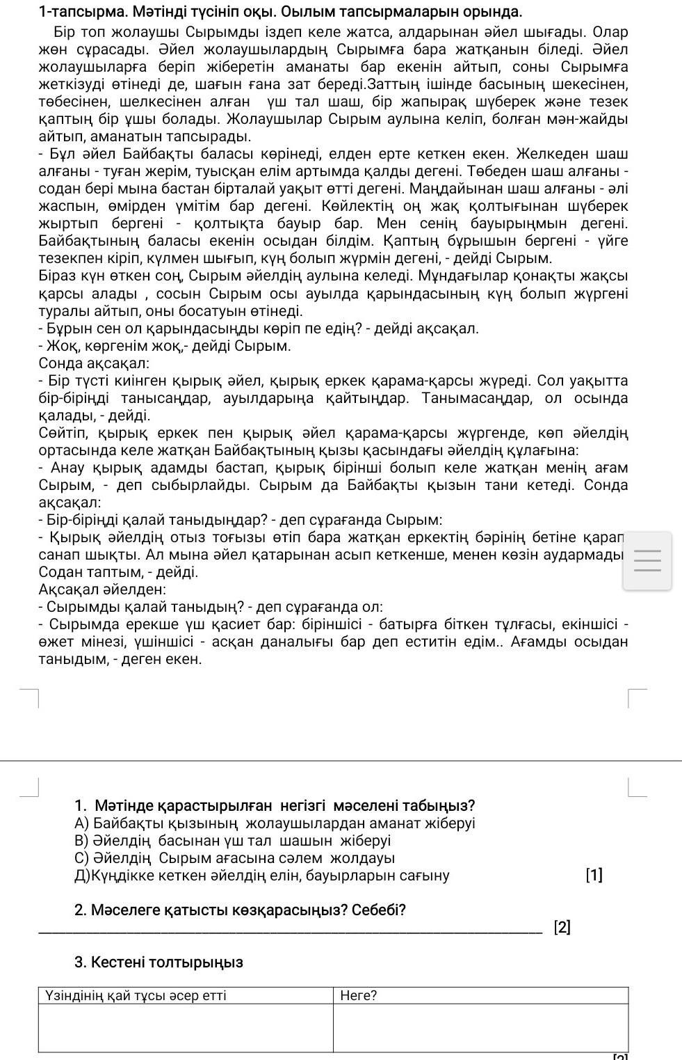 2-тапсырма. Сұрақтарға жауап беріңіз.