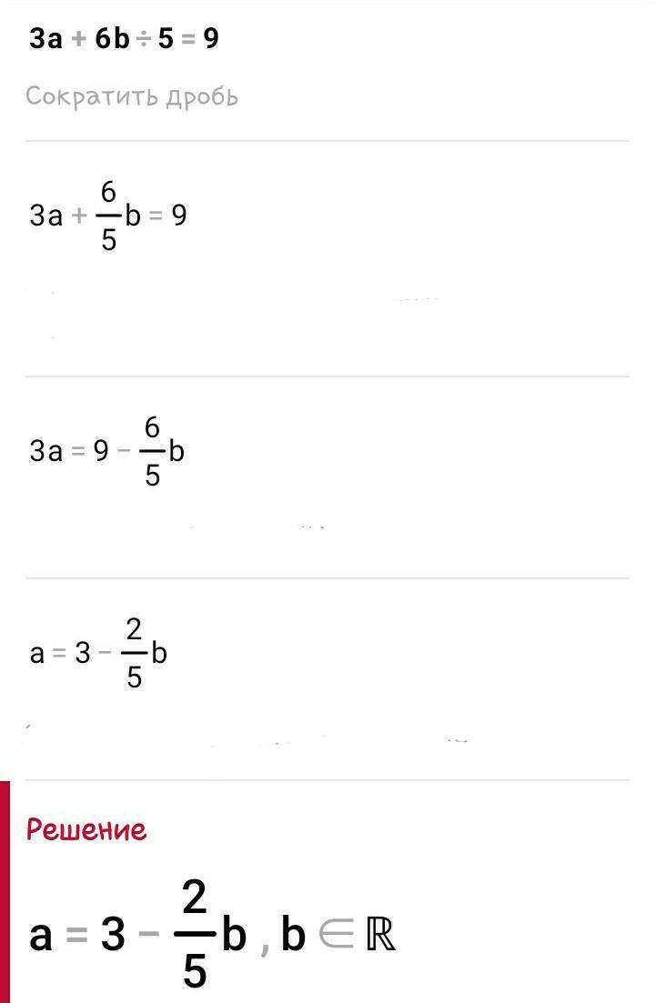 выразите переменную а через переменную b в выражении 3a + 6b/5 = 9 помогите, даю 50 баллов!!!!!!