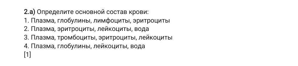 1. Плазма, глобулины, лимфоциты, эритроциты