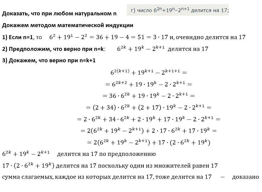 доказать, что при любом натуральном делится на 17? метод мат.индукции знаете?