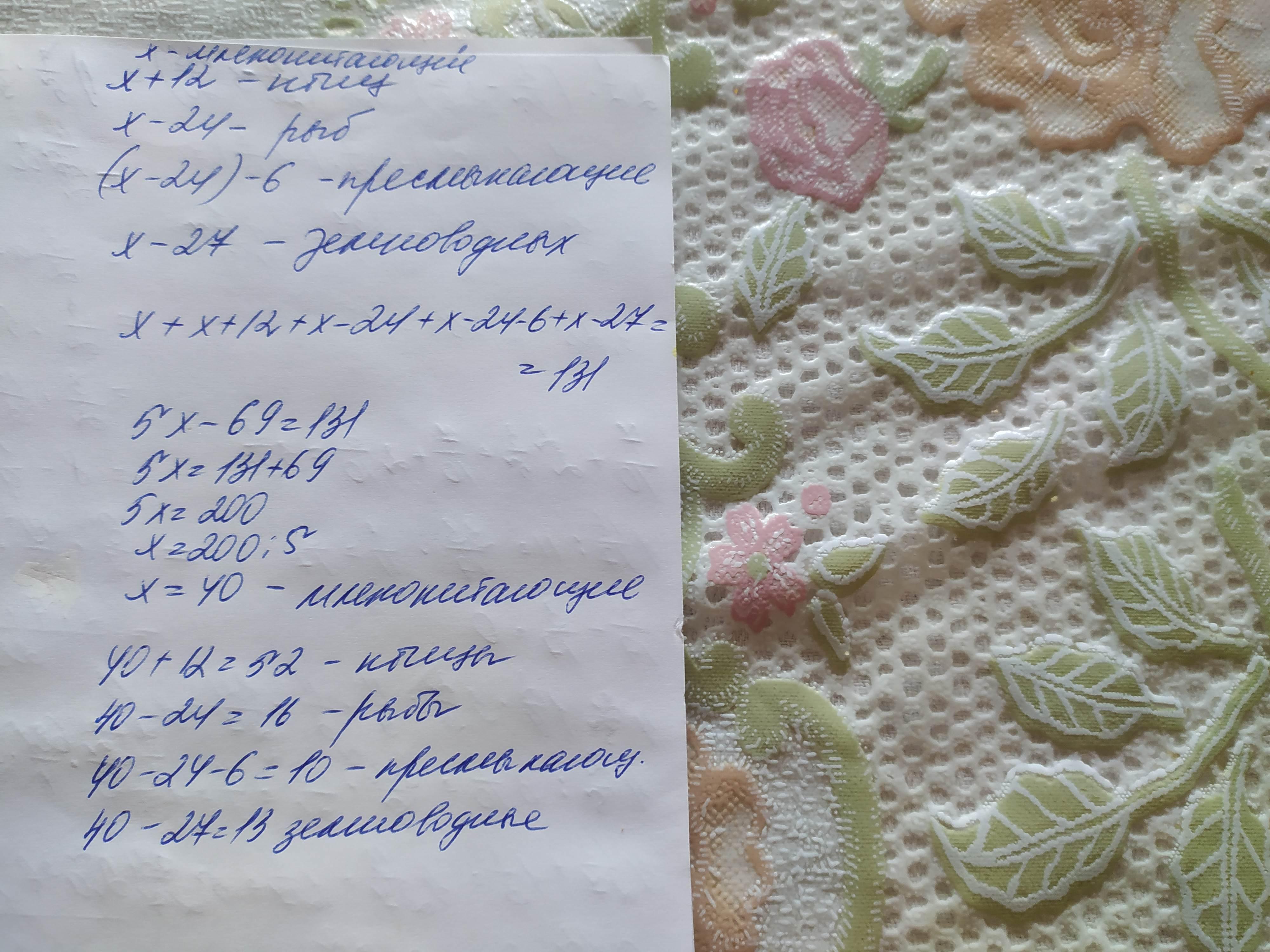 найдите количество млекопитающILX, составив и решив уравнение по условию