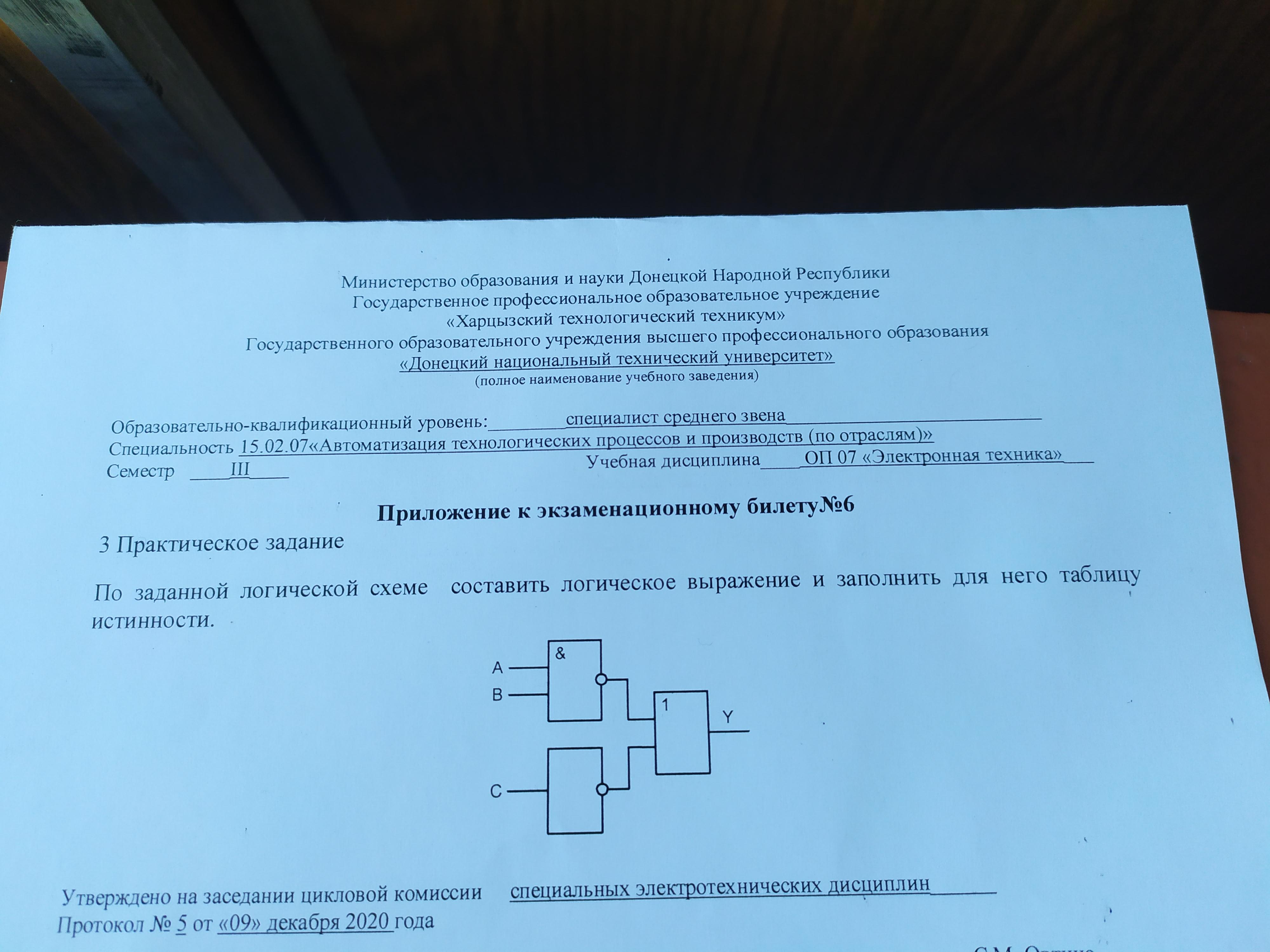 По заданной логической схеме составить логическое выражение и заполнить для него таблицу истинности