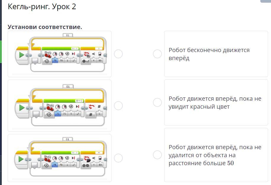 2. Робот движется вперёд, пока не увидит красный цвет