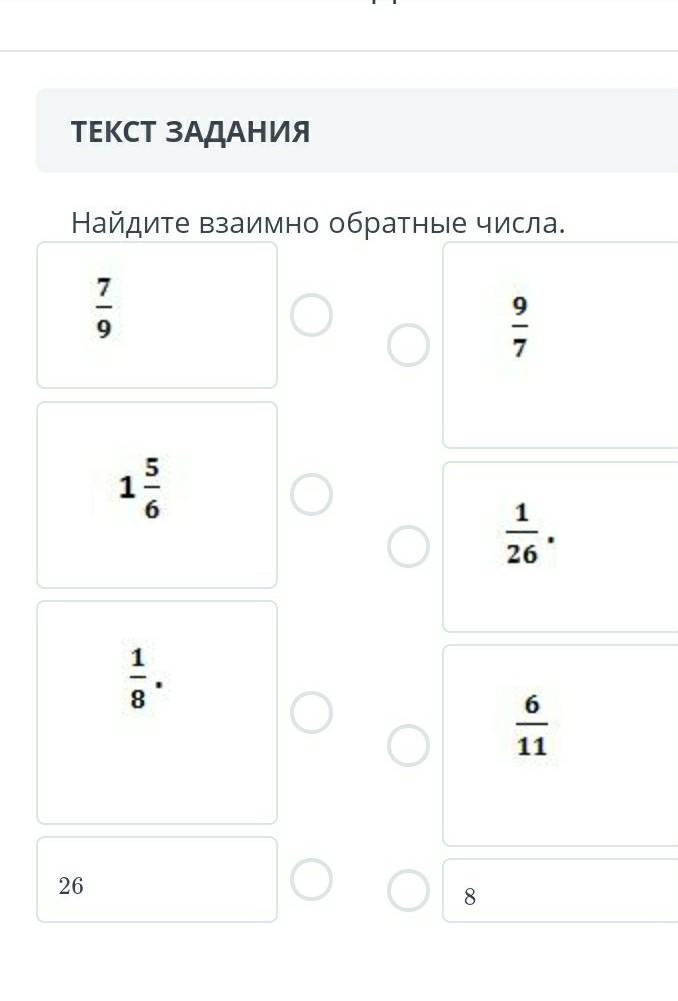 7/9 и 9/7, потому что их произведение 7/9*9/8 = 1,