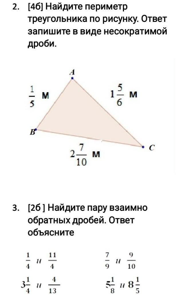 [4б] Найдите периметр треугольника по рисунку. Ответ запишите в виде несократимой дроби.