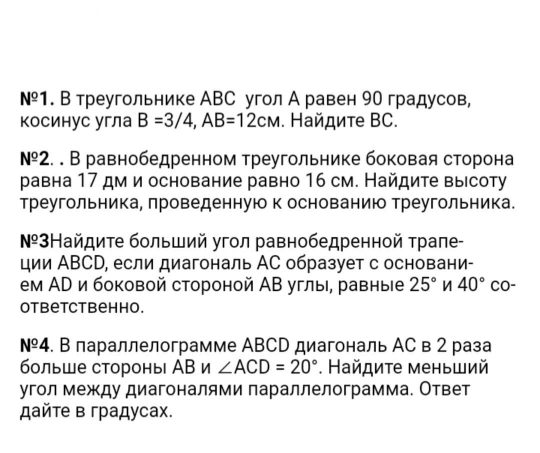 1) cosB =AB/BC => 3/4 =12/BC => BC=12*4/3 =16 (см)