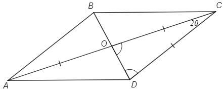 CO =AC/2 =AB =CD => △OCD - равнобедренный, COD=(180-20)/2=80°