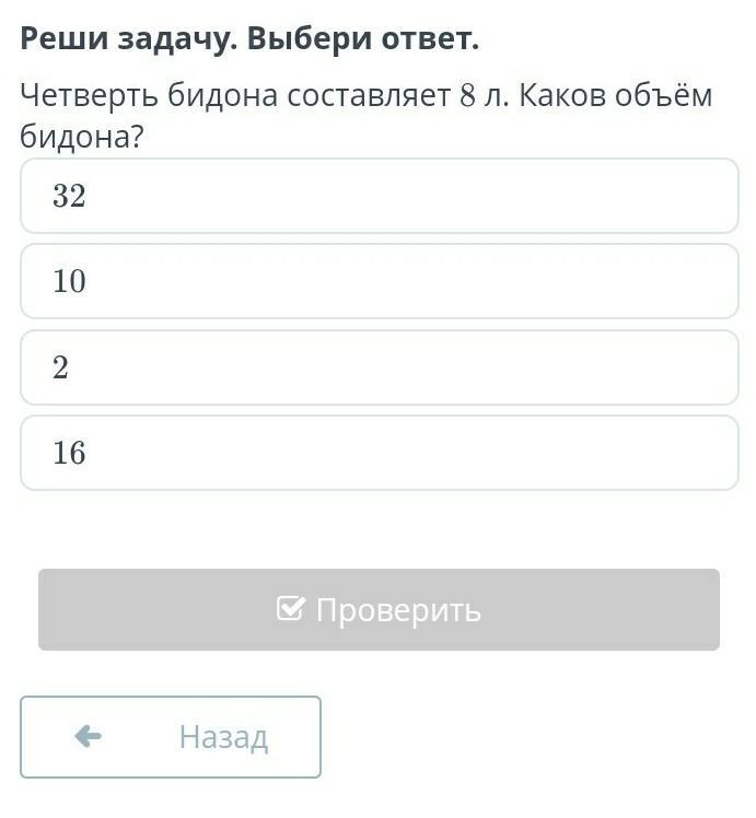 четверть - это 1/4 поэтому, объём бидона=8×4=32л