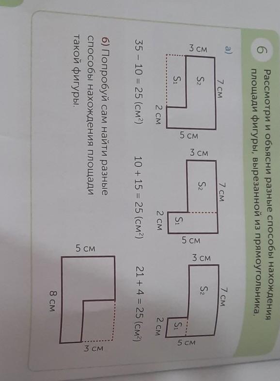посмотри и объясни разные способы нахождения площади фигуры вырезаем из прямоугольника